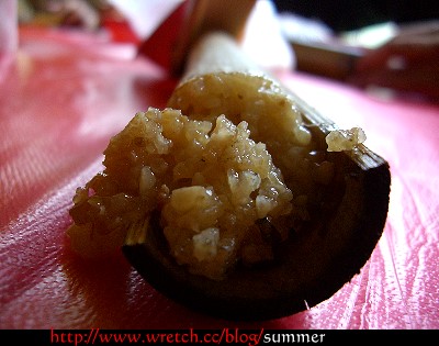 這個是基本配備的菜色,到餐廳時,每個餐桌上面都會放著一捆一捆的竹桶飯,一破開時,外層還裹著一層薄薄的竹膜,糯米飯香伴隨著淡淡竹子的清香,味道淡的很舒服。