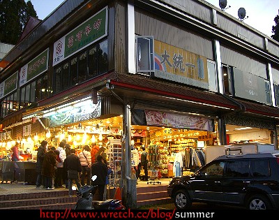 抬頭看看溫度計,嗯...10度,想必明天一早的日出行,應該也會有個6度7度,打了個囉唆,就先步行到餐廳吃飯,不過這餐大夥吃的沒有中午的猛勁,看的出來大家的疲態,畢竟這樣彎曲的山路,對於大家的體力也是一項考驗,草草的吃完了晚餐,大家都到阿里山的西門町晃晃,帶帶名產,阿芙買了明信片,還有好喝的蜂蜜桂花釀ㄒㄒ實在是幸福的味道,在寒冷的冬天捧著熱呼呼的桂花釀,光想到就覺得好幸福