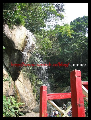 第一個遇見的瀑布>>>>虹橋瀑布,顧名思義,這個瀑布是因為這座紅色的小橋而命名的,老實說,這個瀑布有點弱,弱到我們都一致懷疑他是假的,想說會不會有然在上面接水管,然後開水讓他在流=..=|||