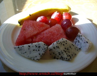早餐的水果很多樣化,看到這麼多樣的水果瞬間覺得很幸福,不知不覺就夾了一堆=..=早餐吃水果對消化系統有很大的幫助,果然吃完沒多久...我跟ㄚ芙就先回房間排隊上廁所去了