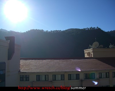 昨天睡了個好眠,一早七點爬了起床,拉開窗簾,早上的陽光好耀眼,其實早上的武陵氣溫挺高的,看了看室外的溫度計,大約有30度吧!看到太陽...才熊熊的驚覺...遭了,忘記帶防曬了,這般的陽光一定黑>.<快速的梳洗一番後,就到餐廳去食用早餐,兩個人的旅行果然簡便,速度都很快,尤其是跟有默契的人一同旅行,乾淨俐落不拖泥帶水