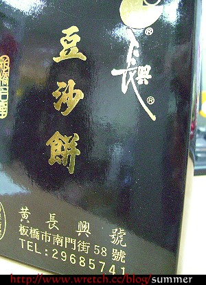 長興的豆沙餅,我想住在板橋或是本橋附近的人,應該不陌生才對,印象中的黃長興豆沙餅,在我小時後的記憶裡,總是會出現在中秋節,每次在接近中秋節的前幾天,爹跟娘就會去排隊買個幾盒回來,就在中秋節大家齊聚的夜晚,總是會伴隨著柚子出現,最有名的就是他的白豆沙餅了,最近主管要離職了,之前有聽他說他喜歡吃白豆沙餅,我也答應有經過要幫她帶個ㄧ盒來,怕留下了個遺憾,趁著要走的這個禮拜,趕緊去買了個ㄧ盒。